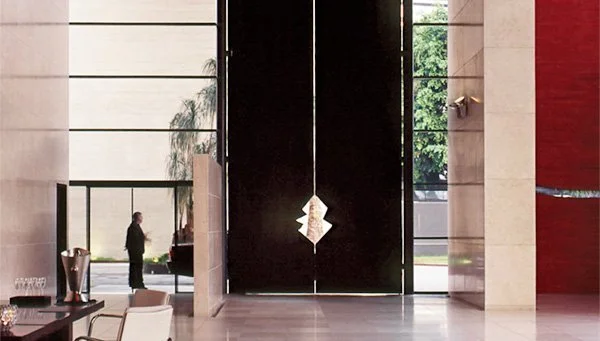 Gorgeous interiors - big and bold like the belly of a ship. The details are stunning like the cut-out in the door.