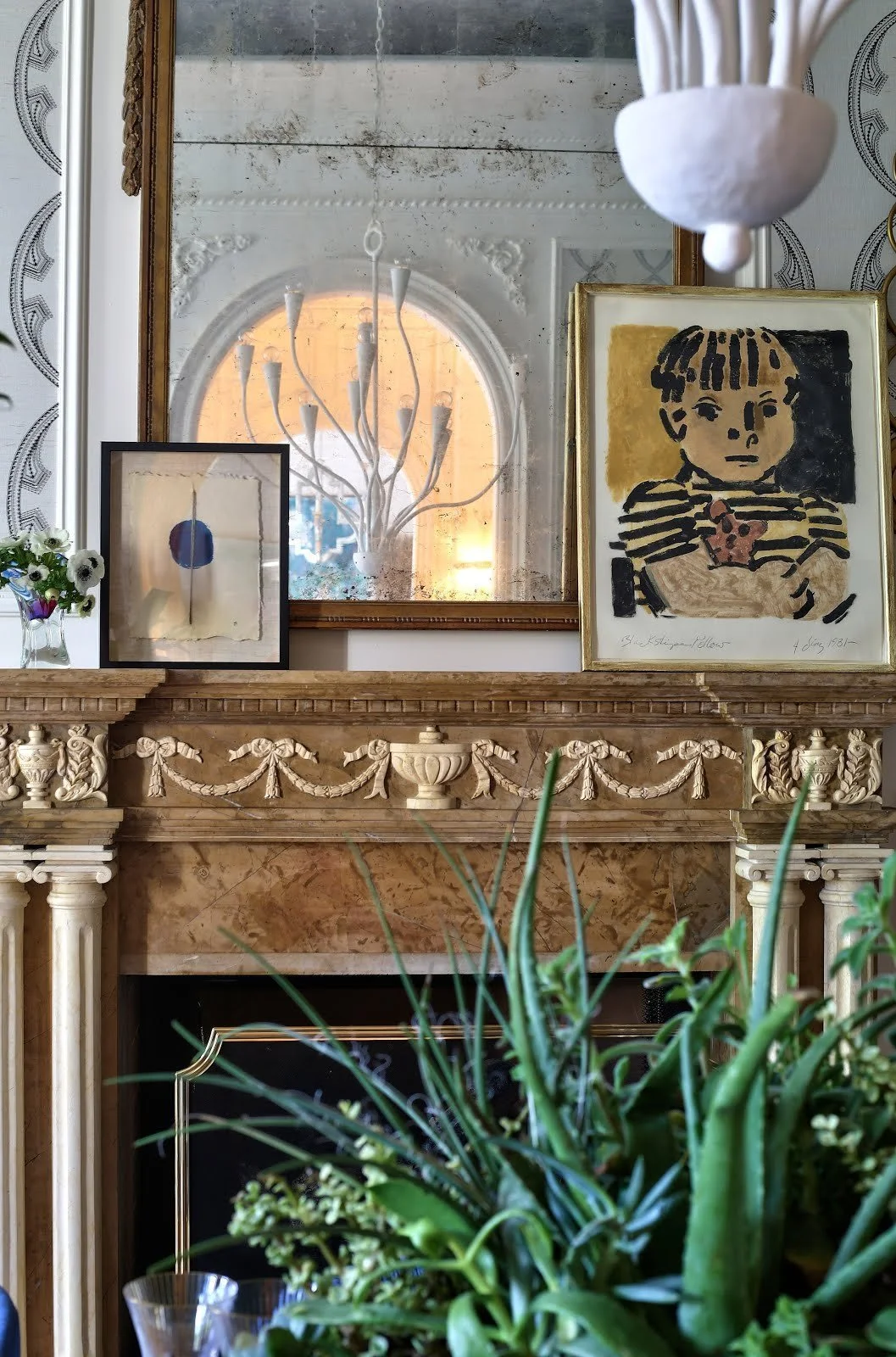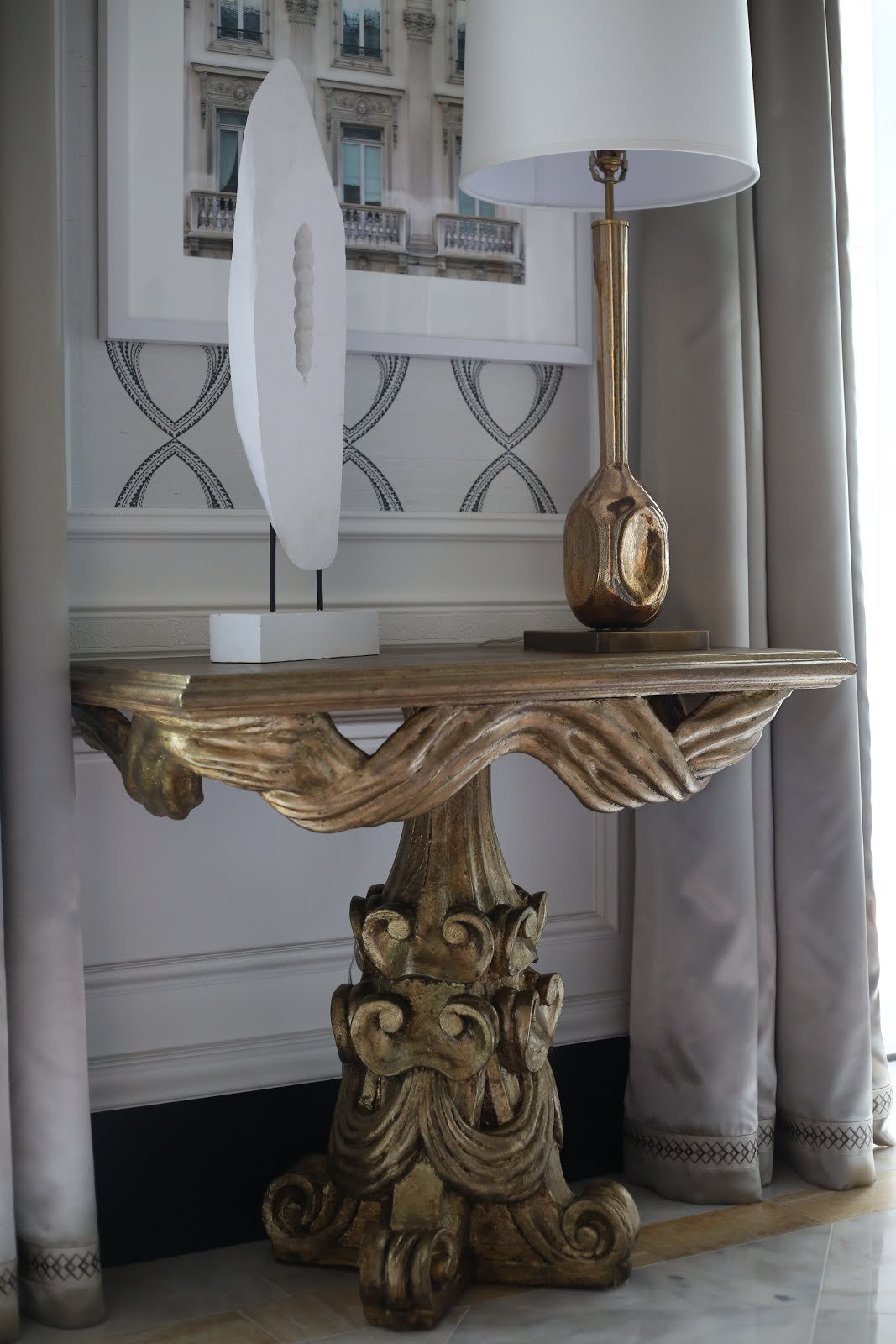 Plaster, gilded, cerused, brass, terracotta, marble, plaster, concrete: Mixing materials for interest and flavor.