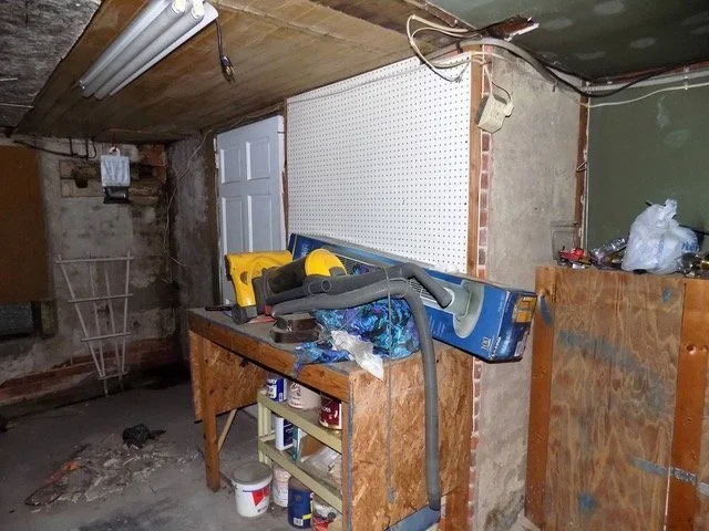 Before: Clearly a storage area with no finished walls or ceiling
