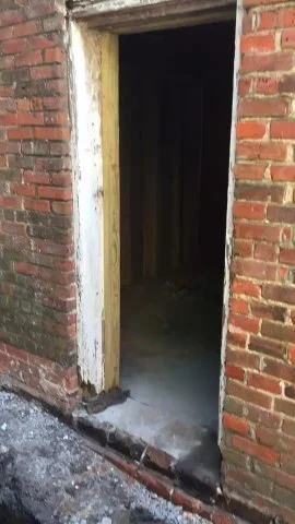 Can you see our boarded up window on the back wall?