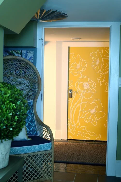 I love adding surprise focal points like adding the hand painted door in another of our Bridget Beari Colors called Bertie. Painted by a local Richmond artist Mary Terry.