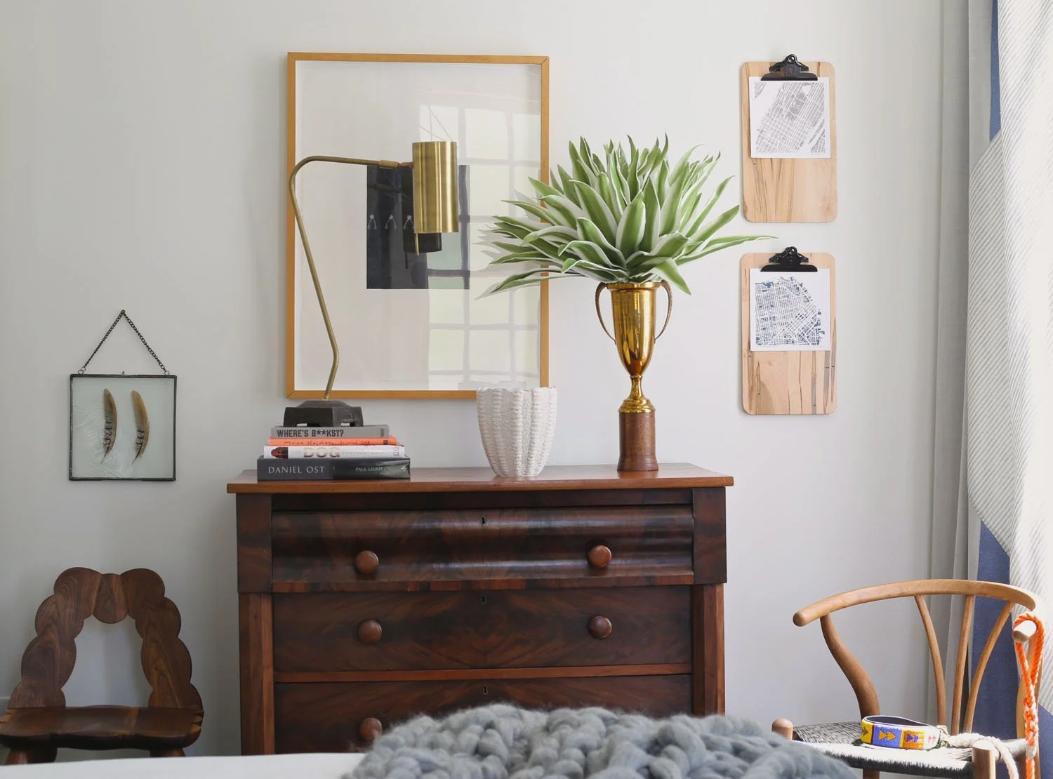Handcrafted clipboards with map art were a perfect choice for changing art in a kids room. Our selection of Baltimore artist Theresa Bauer kept a simple image with white void space and natural framing.