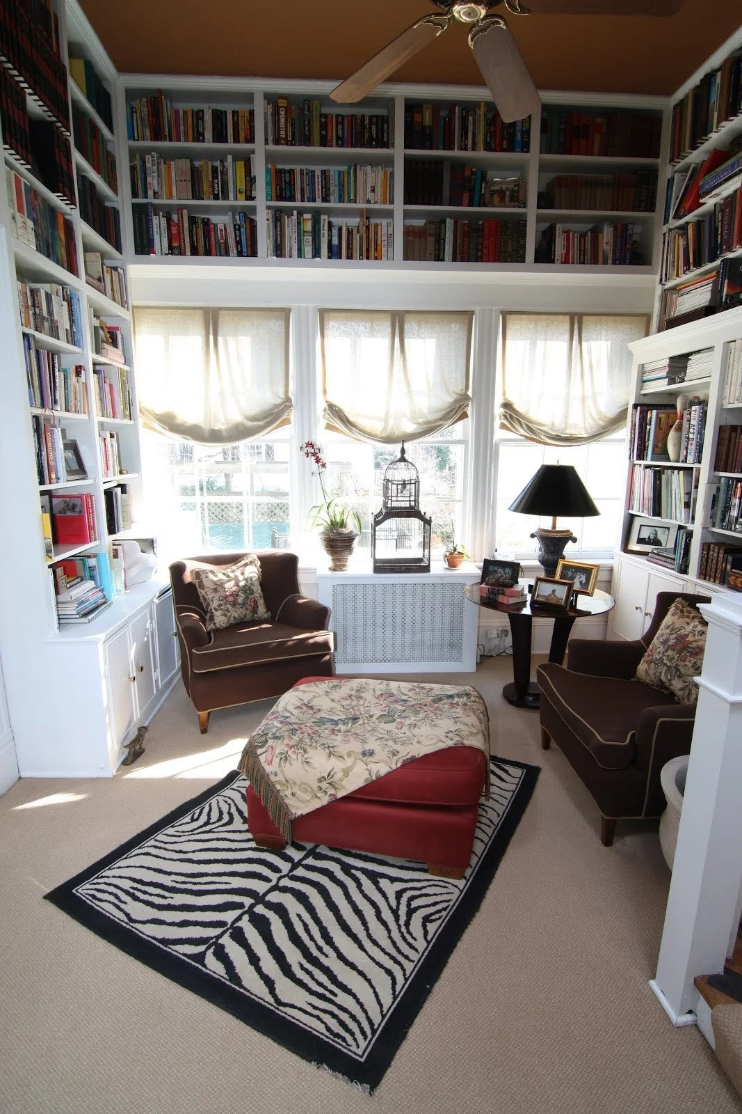 Your Favorite Room in Your Home ..... Library. I love this room as it is the perfect place to sit in the morning with coffee for quiet time and the best place for wine in the evening for chatting about the day. Dogs on the ottoman and both of us in our chairs - we love this cozy room filled with books of the past and present, memories and treasures. Plus I love the caramel ceiling.