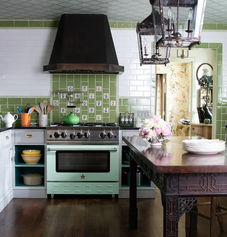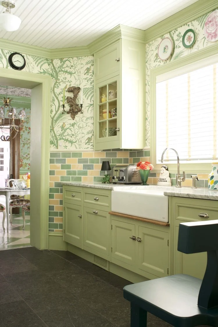Jason Oliver Nixon and John Loecke: John and I are crazy for English-inspired shades of green, we love bringing the great outdoors within. If it works in your garden, it will work in your home. Green is the perfect neutral upon which to layer and build.