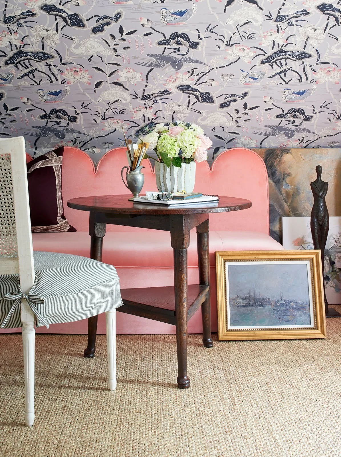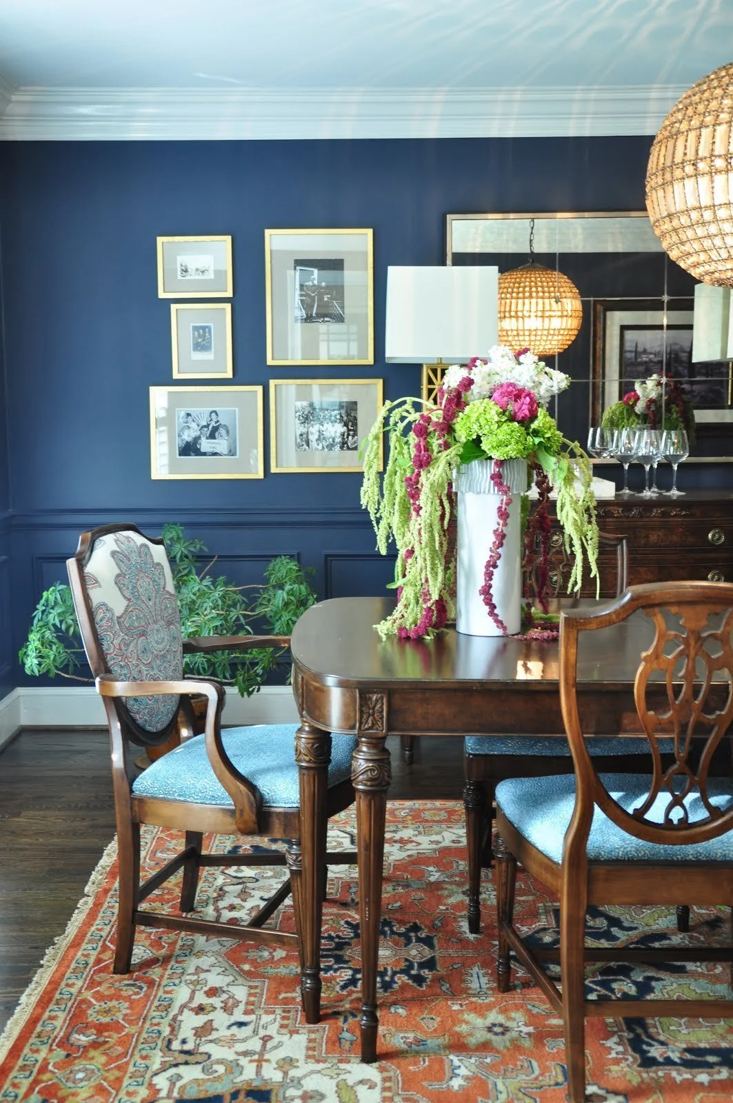 This is SO hard! As an Art History lover as well as artwork for my own home, I can’t pick just one! My favorites in my own home are pieces that have a personal connection for me - an abstract piece, a Panamanian Mola, an Audubon, an Iraqi rug, a piece by my grandmother…the list goes on and one. Anyway, they almost all have blue or green in them with pops of orange.