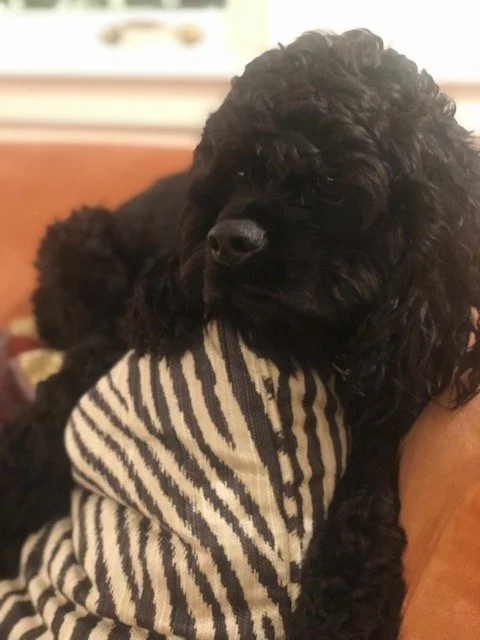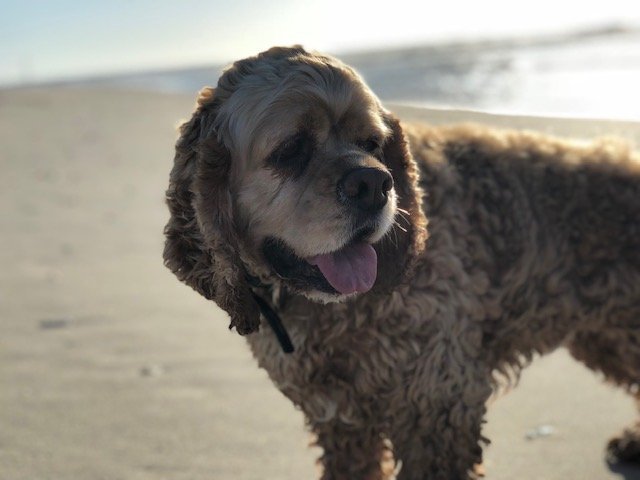 HP: We have two dogs. "Teddy" is a buff colored cocker spaniel and "Herald" is a solid black cocker spaniel. Herald is so black, his fur is almost navy. Teddy's coat changes throughout the year. It bleaches out in the summer months, but in the winter, it is a medium copper.