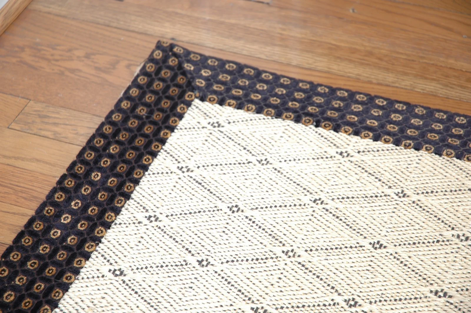 The Stark sisal rug in the natural and black diamond pattern continues my black color scheme. I bordered the rug in a black and gold velvet to encompass the room with a defined border.