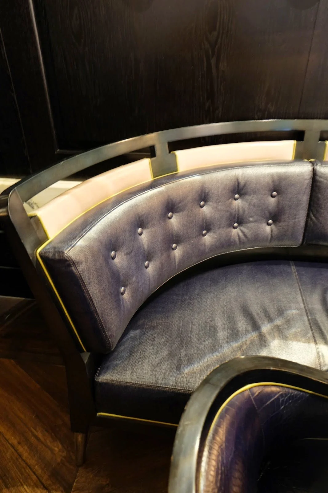 The curved detail on the banquette.