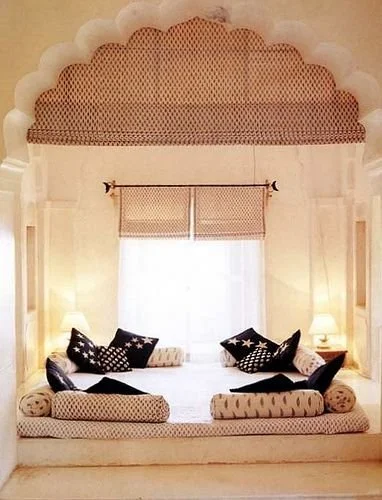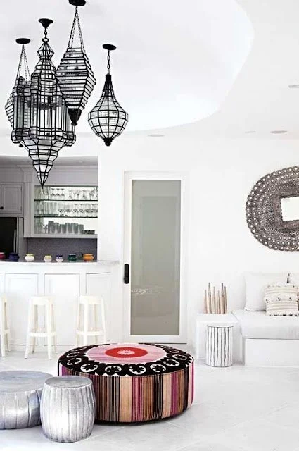 I love the idea of layering in a room and nothing is more layered than a Moroccan styled room. Some designs over do the causal style and the motifs but some use those elements in a sophisticated brilliant way, almost a purposeful chaos.
