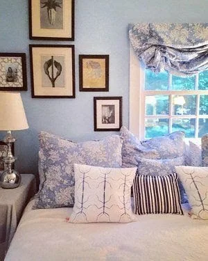 the paint color is the same hue as the blue and white toile- so in this case we used tone