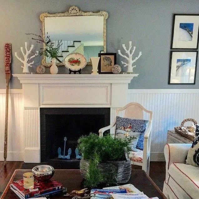 We moved several times growing up -- and we lived in unique places from a historic sea captain’s home in Port Jefferson, Long Island overlooking the harbor to a converted, historic barn on a mountain top in Vermont. My mother was an artist and painter and loved color, and she used grey often as a backdrop to offset her fastidious palette. In our sea captain’s home, she painted the large, rambling kitchen wainscoting a gull grey then the wall above it and the walk in food pantry a buttery yellow. Even today, I enjoy using grey and it reminds me of my childhood. I have used some form of grey in almost every home I’ve decorated. In a recent Park Avenue apartment I painted the walls three different shades of grey in three adjoining rooms from darker to light beginning with the study a lacquered smoky grey, then ending with a pale grey in the living room...it created an ombre effect and was stunning. My dining room/kitchen in East Hampton (where we have vaulted ceilings) I painted a medium gull grey above the wainscoting and the wainscoting a fresh white below. Here the grey and white are the perfect backdrop for pops of color and the white wainscoting below keeps it fresh and perfect for a beach house.