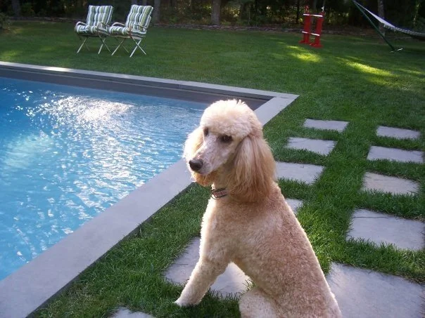 Our Standard Poodle Bridget (bridge-y) by the pool