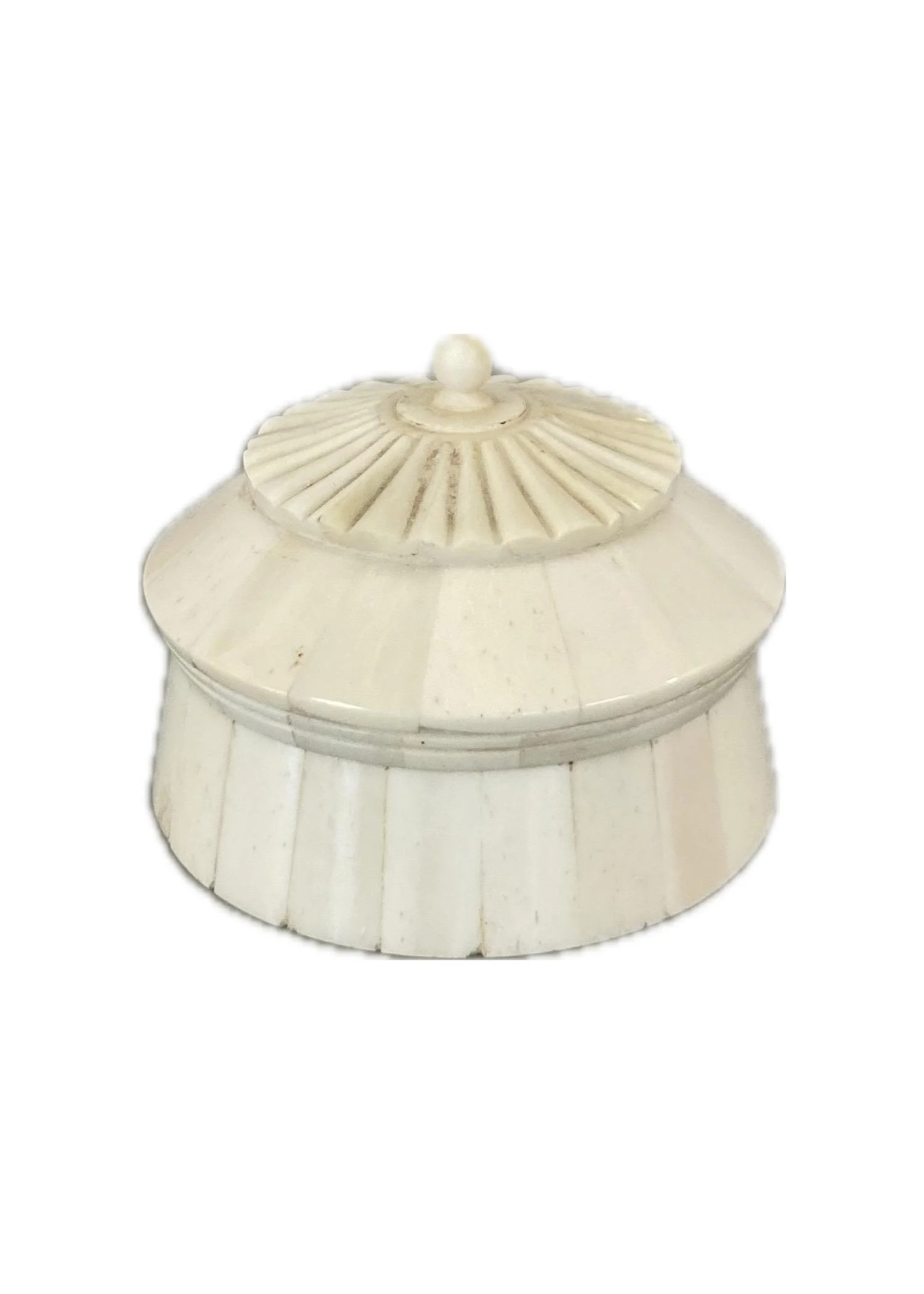 This tiny little box packs a big punch! Carved natural bone tiles set on a wood base create a unique treasure perfect for keeping rings and other small items safe.
