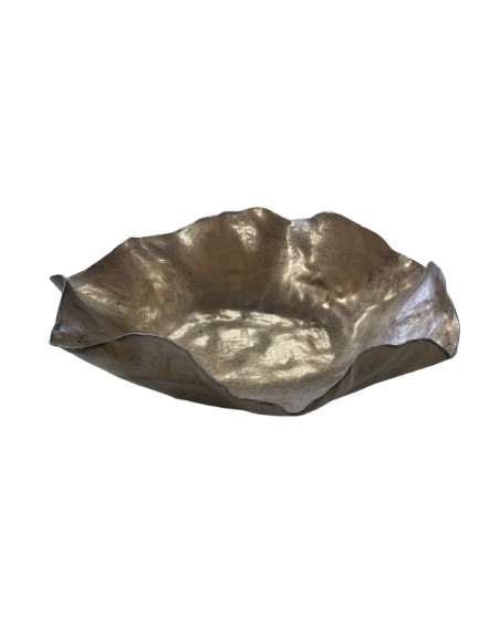 This unusual bowl will have your guests asking “Where did you get that?”. Free formed of ceramic in undulating waves and finished with a visually textured metallic finish, this bowl will stand out no matter where you use it.