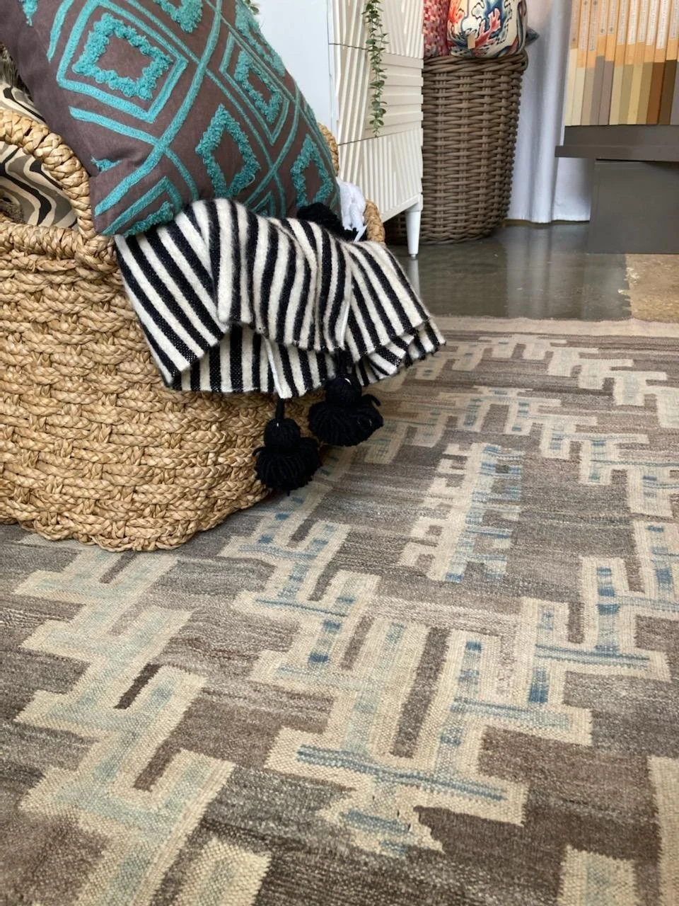 RUGS › AREA RUG Image 1 of 1 AREA RUG $950.00 Neutral tones of cocoa brown and beige with hints of blue.5’ 6” x 7’ Add To Cart Added! Neutral tones of cocoa brown and beige with hints of blue.5’ 6” x 7’