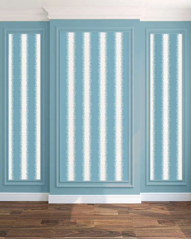 Chika is inspired but the fringe on a Mexican serape blanket discovered in a Tulum market. The elegant simplicity of this vertical repeat creates a stunning backdrop for myriad design styles and is versatile enough to rock a groovy gallery wall as well as a simple mirror and sconces.