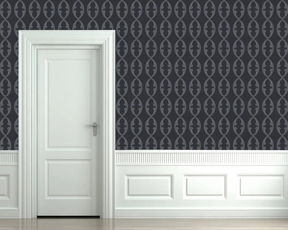 Roux is a modern reinterpretation of Parisien Art Deco patterns. Its graceful, curved, and symmetrical forms create a harmonious pattern that has exquisite presence but does not compete with a room’s architecture or décor. At home, in a formal dining room, as it is in a feminine dressing room.